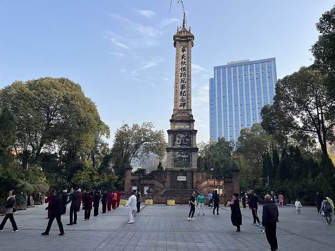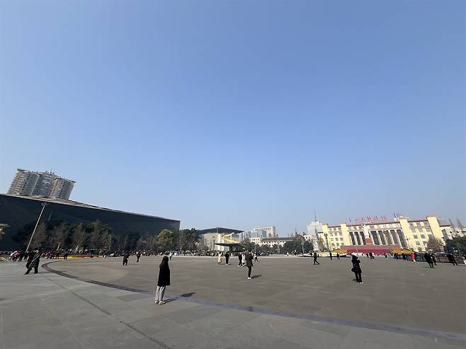 | ▲ 청두 도심 한복판에 있는 톈푸광장 전경. 축구장 몇 배 크기의 넓은 광장이 쓰레기 하나 없이 깨끗하다. |