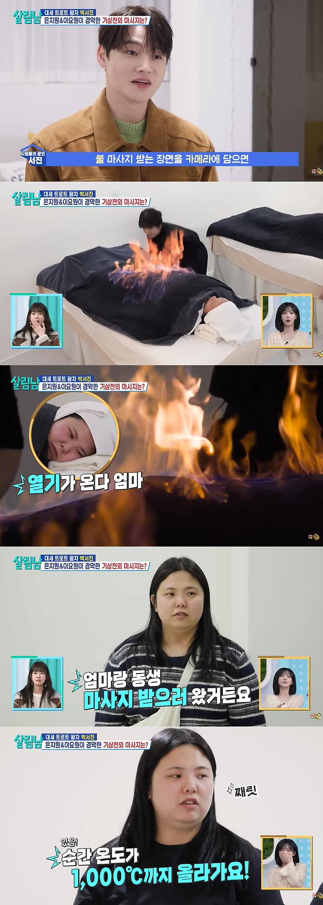 박서진은 "불 마사지 받는 장면을 카메라에 담으면 방송 분량이 나올 거 같았다"라며 너스레를 떨었다.