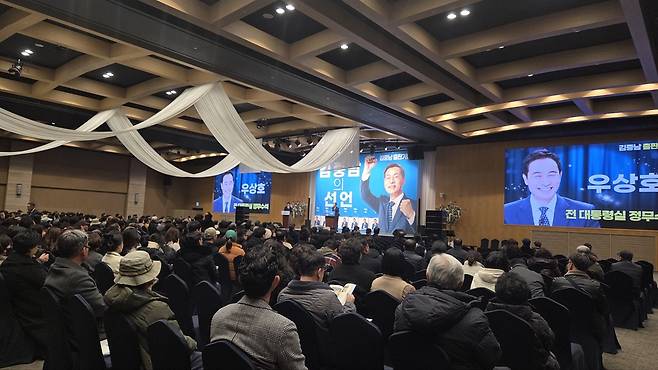 | ▲ 김중남 출판기념회가 열린 행사장 전경. 지지자와 참석자들로 붐비는 공간에 미묘한 긴장과 기대가 교차하고 있다. |