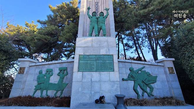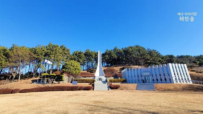 차를 세운 자리에서 바라본 언덕 위는 고요했습니다. 해병대 상륙작전을 기리는 전적비는 계절이 바뀌어도 같은 자세로 서 있었고, 그 아래에 새겨진 사람들의 형상은 여전히 서로를 향해 몸을 기울이고 있었습니다. 전쟁은 끝났지만, 그 장면은 끝나지 않은 듯 보였습니다. 지난해 유월, 호국보훈의 달에 이곳을 찾았을 때는 공기가 달랐습니다. 초여름의 빛은 또렷했고 녹음은 무거웠습니다. 그때는 기억해야 할 달이어서 이곳에 왔습니다. 겨울의 원문공원은 다르게 다가옵니다. 기억하라는 말이 없어도 자연스럽게 기억하게 만듭니다.