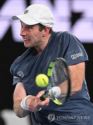 epa12676921 Botic Van De Zandschulp of Netherlands in action during the Men?s 3rd round match against Novak Djokovic of Serbia on day 7 of the 2026 Australian Open tennis tournament in Melbourne, Australia, 24 January 2026. EPA/LUKAS COCH AUSTRALIA AND NEW ZEALAND OUT