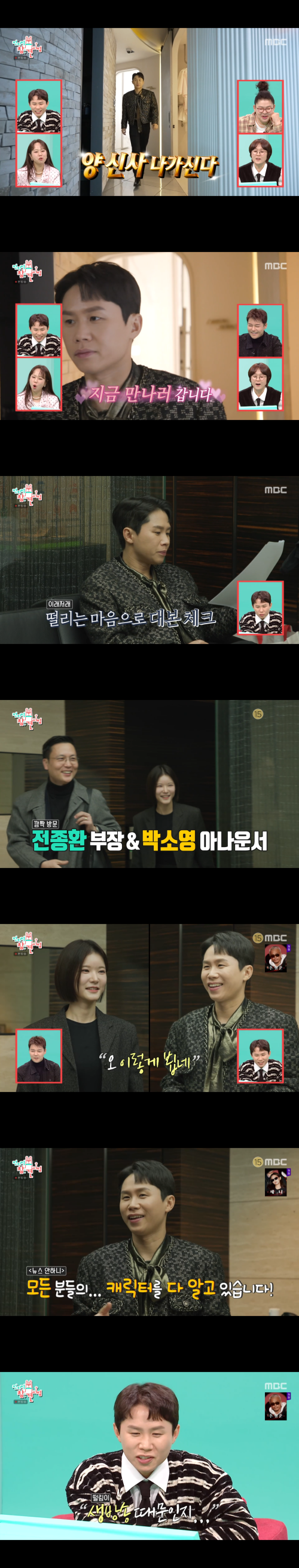 이날 촬영 현장에 도착한 양세형은 평소 이상형으로 꼽아온 박소영 아나운서를 보자 긴장한 기색을 숨기지 못했다. 박소영이 대기실을 찾자 양세형은 “이렇게 뵙네”라며 말끝을 흐렸고, 박소영은 “나와주셔서 너무 감사하다”고 인사를 건넸다.