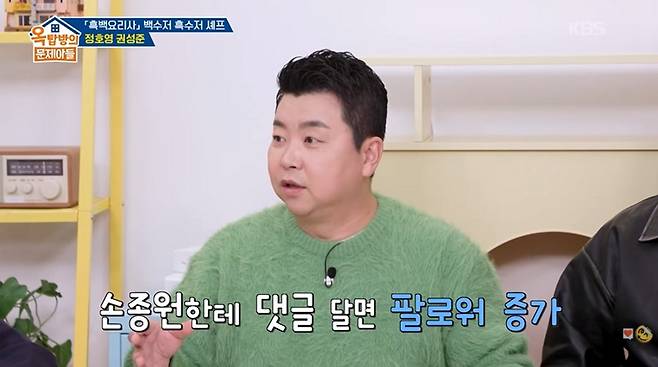 이에 권성준은 "팔로워를 빨아 올 수 있다"고 인정하면서도 "근데 제가 댓글 다는데, 밑에 늘 정호영도 같이 있다"며 맞불을 놓아 웃음을 자아냈다.
