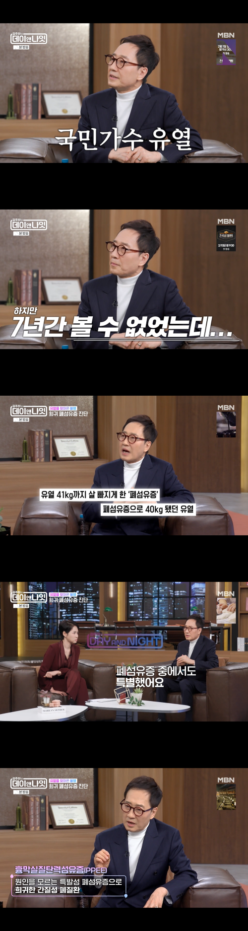어제인 24일 방송된 MBN '김주하의 데이앤나잇'에는 유열이 게스트로 출연해, 폐섬유증 진단 이후 7년간 이어진 투병과 폐 이식 수술까지의 과정을 직접 전했다.