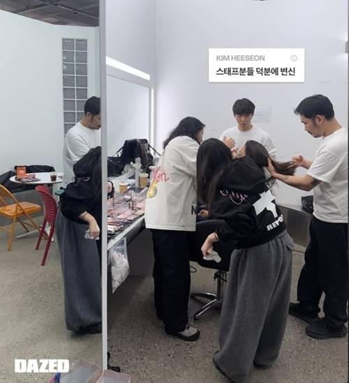 특히 “머리에 왕 리본 달아봤어요. 셀카는 너무 어색해”라는 짧은 코멘트와 달리, 사진 속 김희선은 전혀 어색함 없는 분위기로 시선을 끈다. 촬영에 집중한 스태프들 사이에서 메이크업을 받는 모습, 소품을 손에 쥔 채 미소 짓는 컷까지 현장감도 고스란히 전해진다.
