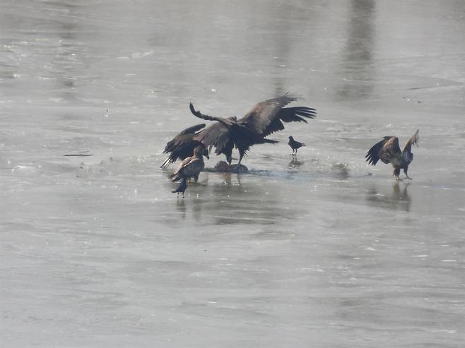| ▲ 사채주변의 독수리와 흰꼬리수리의 모습 |