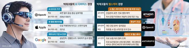 AI 디바이스를 둘러싼 빅테크 간 경쟁은 이미 본격화됐다. 애플은 2027년 출시를 목표로 듀얼 카메라에 스피커와 마이크를 탑재한 핀 형태의 소형 웨어러블 디바이스를 개발 중이다. 구글은 삼성전자·젠틀몬스터·워비파커 등과 손잡고 제미나이 기반 AI 안경을 올해 출시할 예정이다.