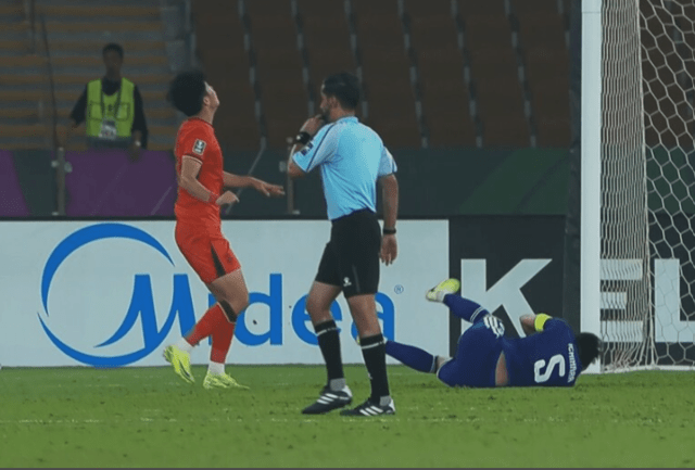 이치하라는 균형을 잃고 그라운드에 쓰러졌고, 이를 지켜본 오구라 코세이는 격앙된 제스처로 파이살 알 바라위 주심에게 강하게 항의했다. 하지만 판정은 논란을 키웠다. 알 바라위 심판은 휘슬을 불었으나 펑샤오에게는 어떤 카드도 제시하지 않았고, 오히려 항의하던 오구라에게 옐로 카드를 꺼내 들었다. <아메바 타임스>는 이 장면을 두고 일본 팬들의 분노가 폭발했다고 전했다.
