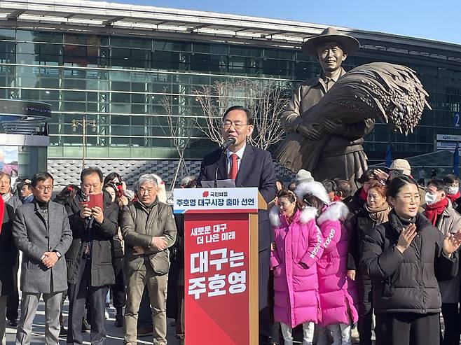 주 의원은 1월 25일 동대구역 박정희 동상 앞에서 대구시장 출마 기자 회견을 열었습니다.