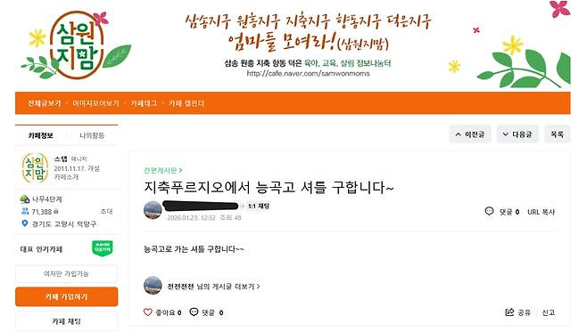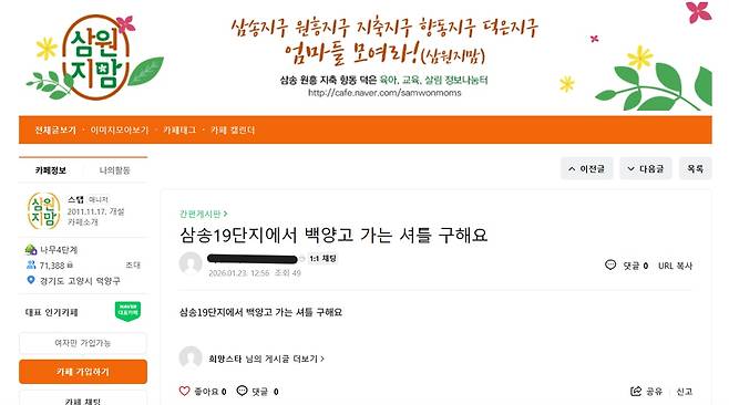 | ⓒ 지역 커뮤니티 카페 갈무리 |