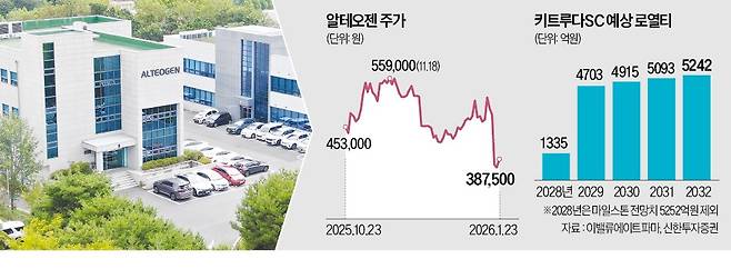 키트루다SC 매출이 바이오시밀러 공세로 기대만큼 확대되지 않으면 로열티 수익이 예상보다 낮은 수준에 머물 수 있다는 점은 변수로 꼽힌다. 기존 키트루다 정맥주사(IV)는 2028~2030년 저렴한 가격의 바이오시밀러 출시가 시작된다. 알테오젠 관계자는 “로열티는 통상적인 라이선스 계약에 비해 약 1.8배 긴 계약 기간과 큰 매출 및 마일스톤 규모 등을 감안했다”며 “장기간에 걸친 안정적인 현금 유입을 가능하게 하는 최적의 구조”라고 강조했다.