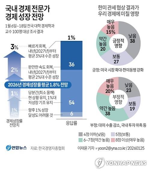 (서울=연합뉴스) 이재윤 기자 = 국내 경제 전문가의 과반은 당분간 우리 경제가 1%대의 저성장 기조를 이어갈 것으로 전망하는 것으로 나타났다.