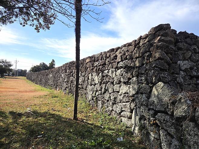 검은 화산석으로 반듯한, 그리 높지 않은 각진 성곽이 정연해 단정하다. 검은 돌들이 묵상하듯 고요하다. 그 고요야말로 가장 오래된 기억이다.