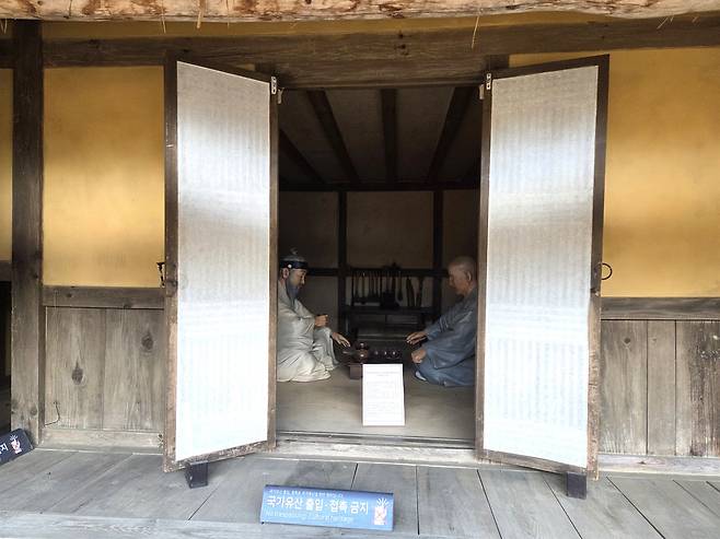 | ▲ 추사와 초의선사 대정읍성 안에 재현된 추사 김정희 선생의 유배지에, 차(茶)를 들고 찾았음직 한 초의선사와 선생의 모습이 재현되어 있다. |
