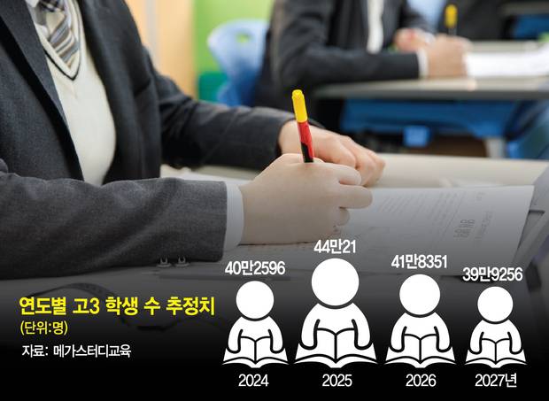 메가스터디 교육 관계자는 “2028학년도 입시의 큰 변화와 정시모집 인원 감소 등으로 현 고2 학생들은 재수를 선택하기 어려운 상황”이라며 “반면 현 고3(2007년생) 학생 수 증가로 2027학년도 수능 N수생은 늘어날 것으로 전망되기 때문에 입시 경쟁이 보다 치열할 것으로 예상된다”고 밝혔다.