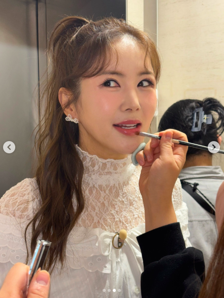특히 메이크업 아티스트의 손길을 받으며 카메라를 향해 환하게 미소 짓는 장영란의 표정에서는 특유의 밝고 긍정적인 에너지가 그대로 전해졌다. 긴 머리를 반묶음으로 연출한 헤어스타일 또한 우아한 분위기를 더했다.