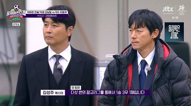 25일 저녁 JTBC '뭉쳐야 찬다4'(이하 '뭉찬4')에서는 김남일 감독의 '싹쓰리UTD'와 이동국 감독의 '라이온하츠FC'가 플레이오프 무대에서 격돌했다.