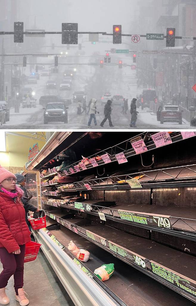 한파와 폭설 속 물류 마비까지 예고되면서 미 전역에서 식료품 사재기 현상이 나타났다. 뉴욕 등 주요 대도시의 상점 매대가 텅텅 비는 상황도 속출했다. 텍사스, 루이지애나주 등 남부 일부 지역에서는 최소 15만 가구가 폭설로 인한 정전 피해를 입고 있다. 이 여파로 월요일인 26일 상당수 미국 연방정부 기관과 학교가 문을 닫기로 했다.