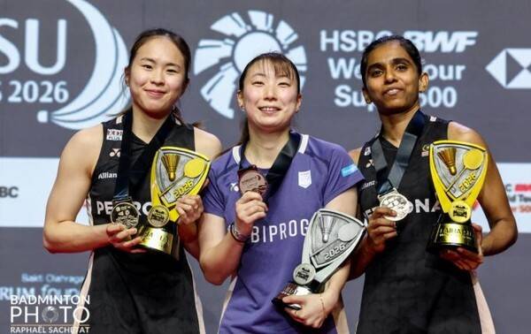 日 배드민턴 급조 페어, 결승 몇 시간 앞두고 의문에 부전패→시상대에 홀로 등장...그럼에도 웃었다 "파트너 고열로 인한 기권, 너무나도 아쉬워"
