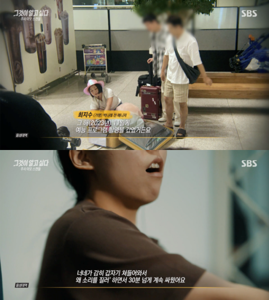 링거을 맞으면서 촬영이 지연되면서 제작진과 말싸움도 벌어졌다. 전 매니저는 "제작진이 '당신 누구야' 했더니, A씨가 '나 MBC 사장 알고 누구 알고 이러는데 너네가 감히 갑자기 쳐들어와서 왜 소리를 질러'하면서 30분 넘게 싸웠다. 그 상황을 목격한 사람들이 '이 사람 의사 아닌 것 같다. 이상하다'고 생각했다"고 밝혔다.