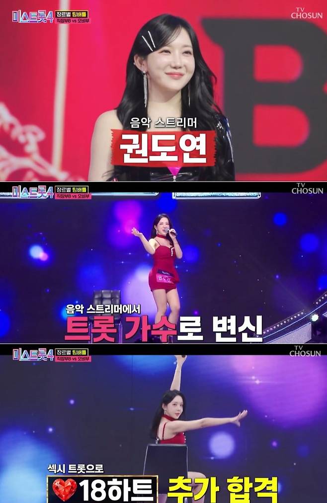 권도연은 이엘리야, 이세영, 이윤나 등과 함께 직장부 B조를 구성해, 실력까지 갖춘 '막강 비주얼' 팀으로 강한 존재감을 드러냈다. 오비부와 맞붙은 팀 미션 배틀에서는 '이 오빠 뭐야'를 선곡, 유혹적인 댄스 트로트를 완벽하게 소화하며 승리의 기쁨을 맛봤다.