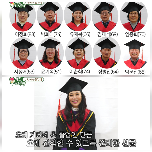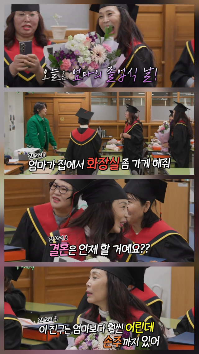 윤시윤은 “44년 만에 졸업이지만, 그냥 방학이 길었던 거라고 생각하자”며 “엄마는 정말 좋은 인생 선배”라고 다독였다. 이어 직접 준비한 졸업 앨범을 선물했고, 어머니는 참아왔던 눈물을 쏟아냈다.