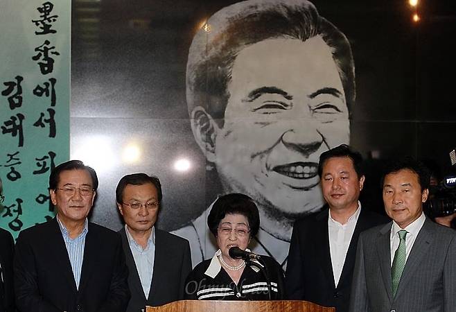 | ▲ 김대중 대통령 서거 3주기 추모 휘호·어록전 개막식이 열린 6일 오후 서울 마포구 동교동 김대중도서관에서 이희호 여사가 인사말을 하고 있다. 이날 민주통합당 박준영, 김두관, 손학규 대선 예비후보와 이해찬 대표가 함께 참석해 자리를 빛냈다. 2012.08.06 |