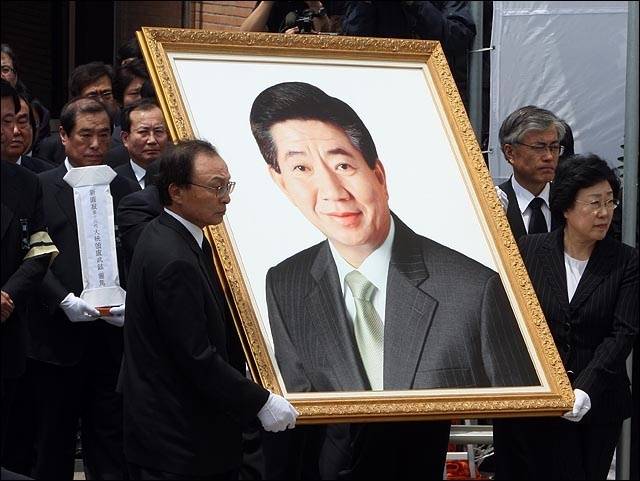 | ▲ 노무현 전 대통령 서거 이틀째인 24일 오전 경남 김해시 봉하마을에서 이해찬, 한명숙 전 총리가 노 전 대통령의 영정사진을 분향소로 옮기고 있다. 2009.05.24 |