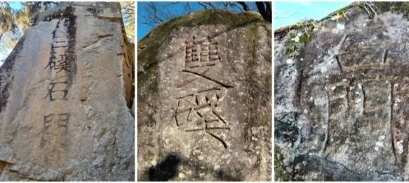 | ▲ 삼계석문과 쌍계석문 왼쪽 사진은 오수에 있는 삼계석문으로 최치원 글씨를 모방했다고 한다. 가운데와 오른쪽 사진은 쌍계사 입구에 최치원이 썼다는 쌍계석문이다. |