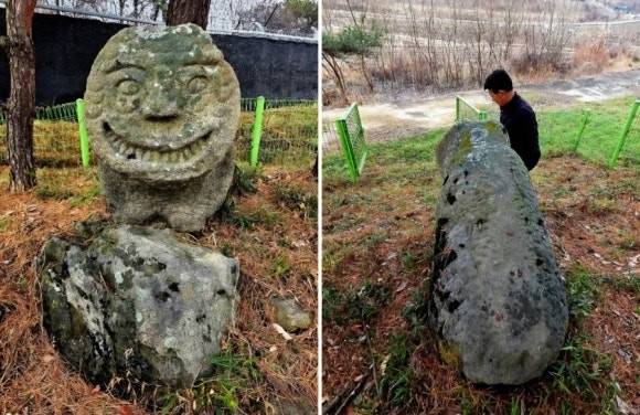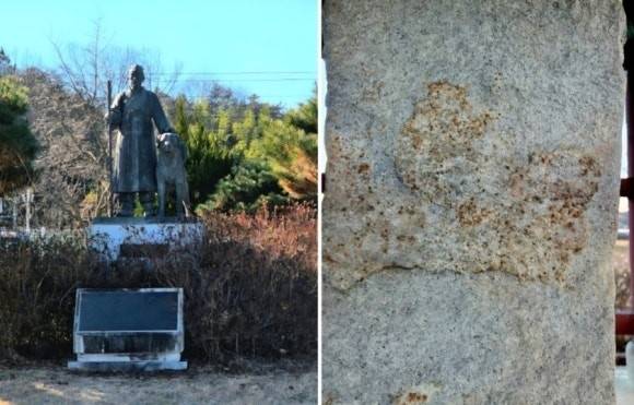 | ▲ 오수의견 왼쪽 사진은 오수역에 있는 상이고, 오른쪽 사진은 오수의견비에 있는 개 형상을 찍은 것이다. |
