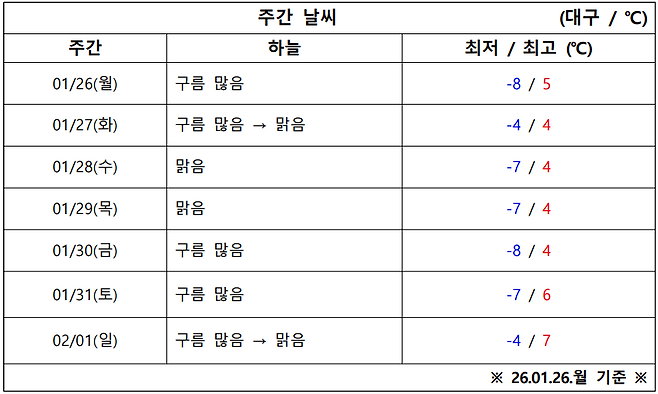 1월 5주 차 대구·경북 ‘날씨 체크’ 시작합니다.