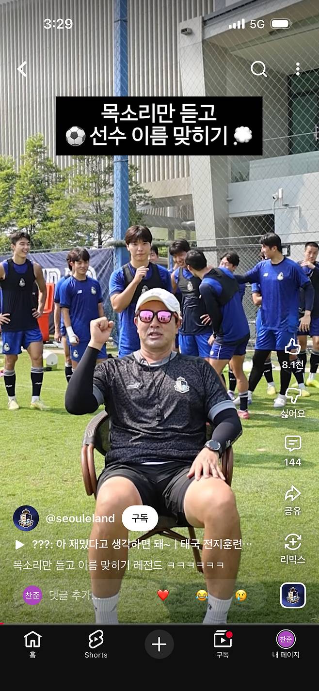 단 1명밖에 맞추지 못한 김 감독은 백지웅에게 5명을 다 맞출 경우, "선수단 전원에게 커피를 쏜다"고 했는데, 백지웅은 이를 성공시켰다. 당황한 김 감독이 백지웅에게 이름을 부른 선수들의 엉덩이를 장난으로 차는 장면은 유쾌, 그 자체였다. '너무 웃기다', '이랜드 분위기 너무 좋다', '이랜드 응원하고 싶어졌다' 등 댓글 반응도 춤을 췄다.