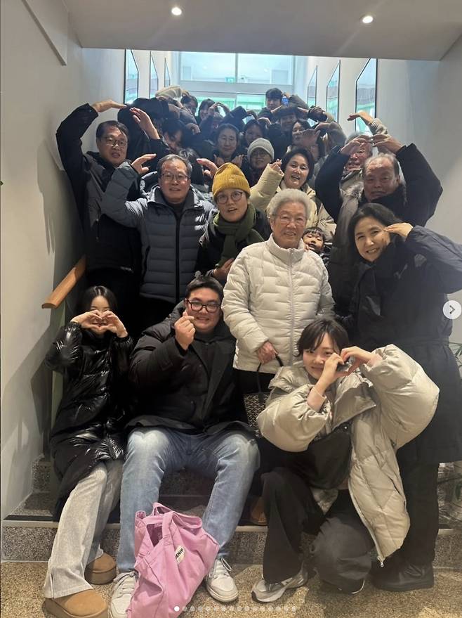 함께 공개된 사진 속에는 대가족의 생일파티 현장이 담겼다. 이경실 어머니의 생일을 축하하기 위해 한 자리에 모인 가족들은 맛있는 음식을 즐기며 행복한 가족 모임을 즐겼다. 특히 군 복무 중인 이경실의 아들 손보승의 건강해보이는 근황도 눈길을 모은다.