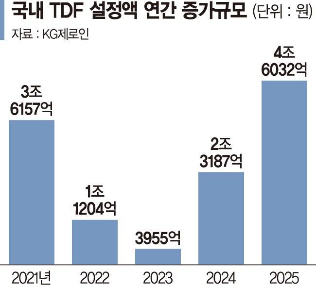 퇴직연금 시장 강자로 떠오른 타깃데이트펀드(TDF)에 지난해 역대 최대규모의 뭉칫돈이 유입됐다.