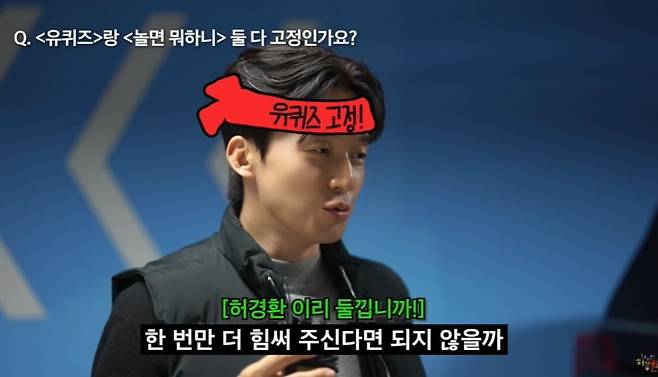 이날 허경환은 MBC '놀면 뭐하니?'와 tvN '유 퀴즈 온 더 블럭' 고정 출연에 관해 언급했다. 허경환은 "아쉽게도"라고 운을 띄우며 "'놀면 뭐하니?'는 그래도 한 주 한 주 불러주시는데, '유퀴즈' 같은 경우엔 제가 이제 살짝 포기한 상태"라고 솔직히 말했다. 허경환은 "그냥 묻지 않고 있다. 우리 국민 여러분이 한 번만 더 힘써 주신다면 되지 않을까"란 바람을 전했다.
