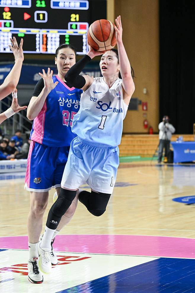 이후엔 신한은행은 신이슬과 미마 루이, 삼성생명은 이해란 윤예빈을 앞세워 일진일퇴의 공방이 펼쳐졌다. 다만 신한은행은 신지현이 3쿼터 초반 5파울로 물러나고, 신이슬마저 3쿼터 막판 4파울째를 기록하며 위기 상황. 58-58로 맞선 가운데 경기 종료 16.8초를 남기고 미유키의 미들 점퍼가 림에 꽂히며 삼성생명이 60대58의 힘겨운 승부를 3연승으로 마감했다. 이해란이 20득점-7리바운드로 또 다시 승리의 주역이 됐다.