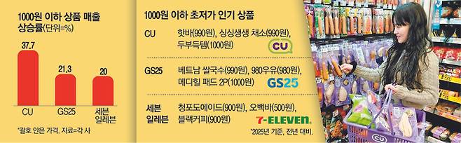 이에 따라 편의점 업계는 1000원 이하 상품군을 더욱 세분화하고 품목을 확대할 계획이다. GS리테일 관계자는 “우유·라면·채소 등 생필품 중심으로 1000원 이하 상품 라인업을 지속적으로 확대해 고객의 장바구니 부담을 낮출 것”이라고 말했다.