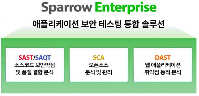 'Sparrow Enterprise'는 애플리케이션 보안 태세(ASPM)를 관리하는 애플리케이션 보안 테스팅 통합 솔루션이다. 소스코드·오픈소스·웹 취약점을 하나의 플랫폼에서 분석 및 통합 관리하고, 형상관리 시스템과 CI(Continuous Integration) 및 CD(Continuous Delivery) 도구 연동으로 분석을 자동화, 상태를 실시간으로 확인할 수 있다. 또 검출 규칙 관리, 담당자 배정, 결재 프로세스 설정 등 관리 기능을 통해 조직의 정책·프로세스에 자연스럽게 통합, 개발 단계부터 보안 리스크를 줄여가는 지속 가능한 애플리케이션 보안 체계를 구축할 수 있다.