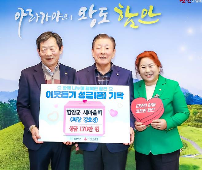 함안군 새마을회가 관내 초극소 미숙아 세쌍둥이 가정을 돕기 위해 회원과 가족들이 뜻을 모아 성금 170만원을 기탁했다.