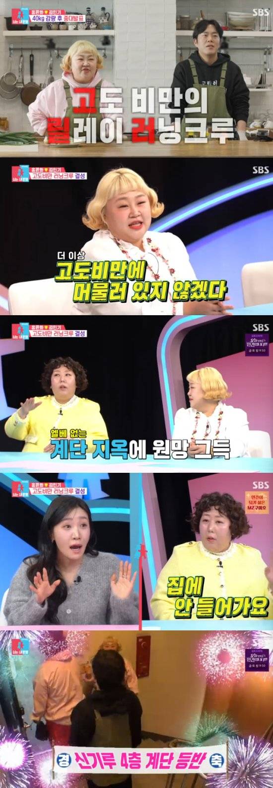 이날 홍윤화는 신기루, 풍자를 초대한 후 "오늘은 먹으려고 부른게 아니다. 고릴러(고도비만의 릴레이 러닝크루) 1기 창단식"이라면서 "도비만에 머물러있지 않기 위해서 러닝을 하려고 한다. 운동을 많이 할 계획"이라고 말해 신기루와 풍자를 실망시켰다.