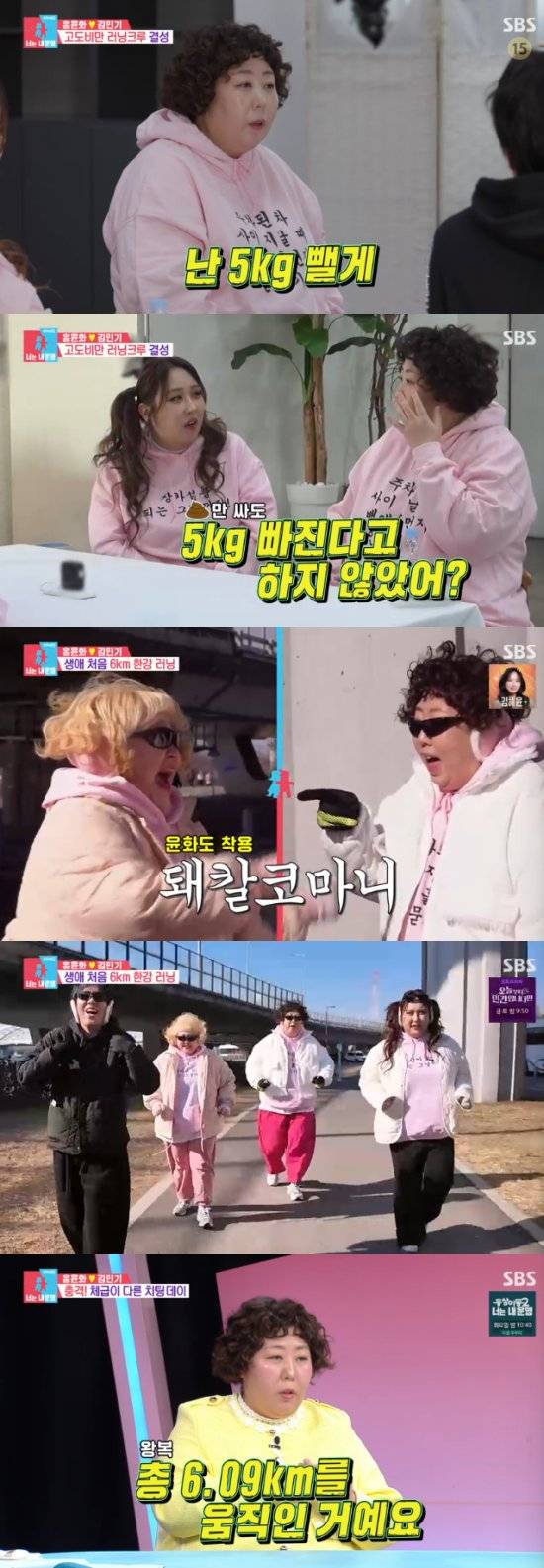 홍윤화는 "일단 뛰자. 한강 공원에서 러닝을 할 것"이라면서 신기루와 풍자를 데리고 밖으로 나갔다. 이들은 6km 러닝에 도전했다. 하지만 신기루와 홍윤화는 '슬로우 러닝'도 아닌 '슬로우 워킹'을 하는 수준이었다.