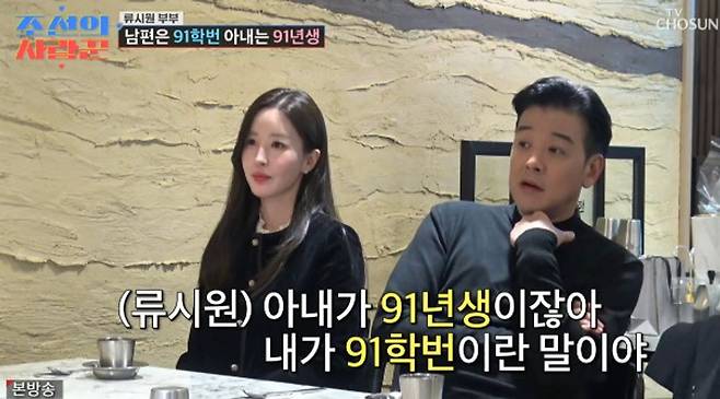이에 류시원은 “제가 94년도 데뷔였는데 그때 아내는 세 살이었다. 평상시에는 못 느끼다가 그렇게 계산했을 때 저도 깜짝깜짝 놀란다. 아내가 91년생인데 내가 91학번이다. 내가 대학교 다닐 때 태어난 거다. 근데 내가 위로를 받는 게 요즘은 스물 몇 살 차이부터 방송하시는 최성국 님도 스물 몇 살 차이가 나지 않나. 그래서 19살 차이는 명함도 못 내민다”라며 24세 연하 아내와 결혼한 최성국을 언급했다. 이에 최성국은 “나이는 중요하지 않다. 19살 차이는 적당하다”라고 능청스럽게 말했다.