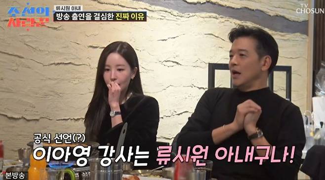 26일 TV조선 '조선의 사랑꾼'에선 류시원·이아영 부부가 윤정수·원진서 부부와 만나 결혼 토크를 펼치는 모습이 공개됐다.