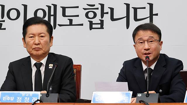 민주당 정청래 대표와 한병도 원내대표 등 지도부는 오늘 이를 제외한 모든 공식 일정을 취소했습니다.