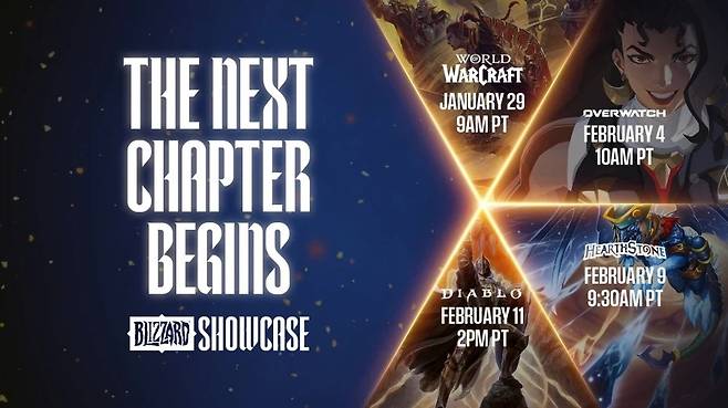 한국 시간 기준 신규 정보 공개 일정도 공개됐다. 월드 오브 워크래프트는 1월 30일 오전 2시, 오버워치는 2월 5일 오전 3시, 하스스톤은 2월 10일 오전 2시 30분, 디아블로는 2월 12일 오전 7시에 각각 새로운 소식을 전할 예정이다.