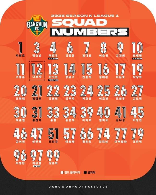 강원FC는 1월 26일 2026시즌 유니폼에 새겨질 선수단의 등번호를 공개했다.