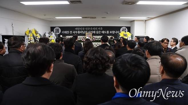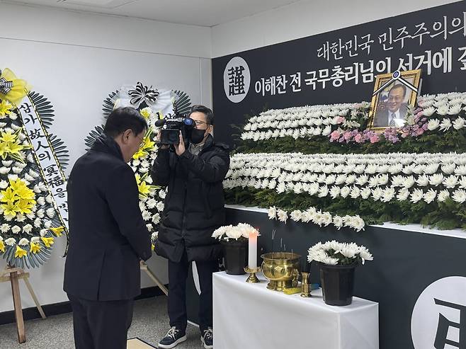 | ▲ 고 이해찬 전 국무총리 대전시민분향소가 민주당대전시당사에 마련되어 추모의 발길이 이어지고 있다. 민주당 지역 국회의원과 당원 등은 27일 오후 합동으로 헌화와 분향을 하며 고인의 뜻을 기렸다. |