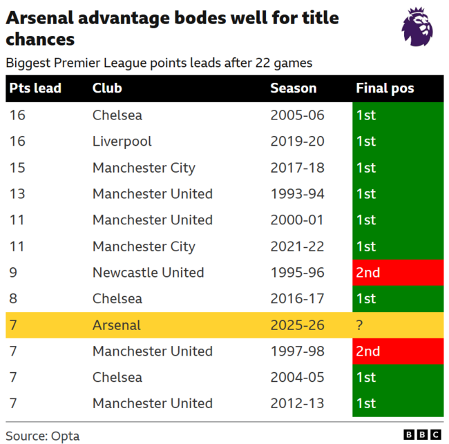 당시 아스날은 23경기 이후 5점 차 선두였다.