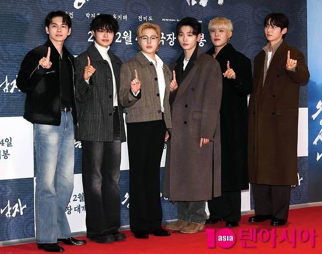[텐아시아=조준원 기자]전 워너원 멤버 옹성우,이대휘,하성운,윤지성,박우진,황민현이 27일 서울 송파구 롯데시네마 월드타워에서 열린 영화 '왕과 사는 남자' VIP시사회에 참석하고 있다.