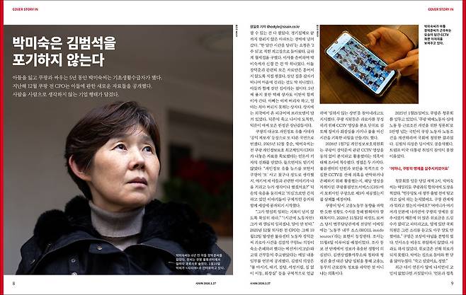 “〈시사IN〉 표지가 말을 걸어오긴 오랜만이네.” SNS에 올린 한 독자의 반응. 쿠팡 산재 노동자 고 장덕준씨의 어머니 박미숙씨의 얼굴 표정에서 모두가 비슷한 마음을 느꼈다. 박씨를 인터뷰한 장일호 편집소통팀 기자에게 물은 취재 후기.